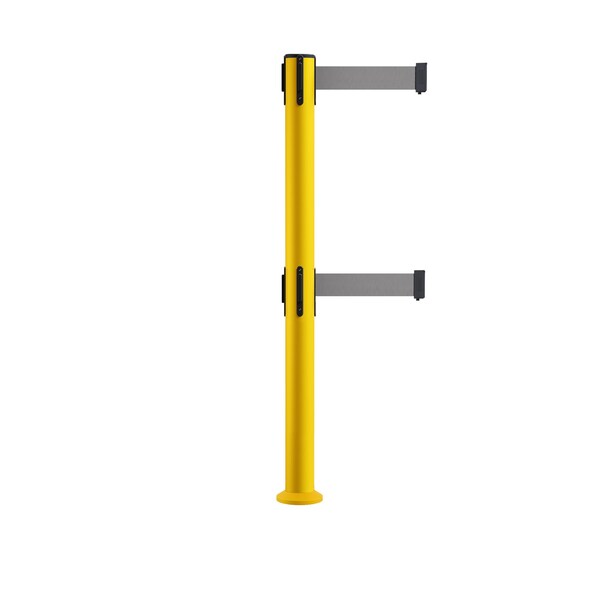 Stanchion Dual Belt Barrier Fixed Base Yellow Post 9ft.Lt Gry Belt (Discontinued)