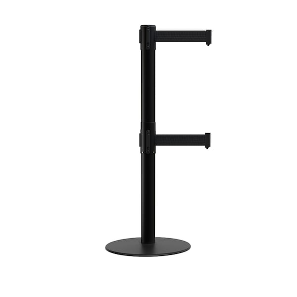 Stanchion Dual Belt Barrier Flat Base Black Post 13ft. Black Belt