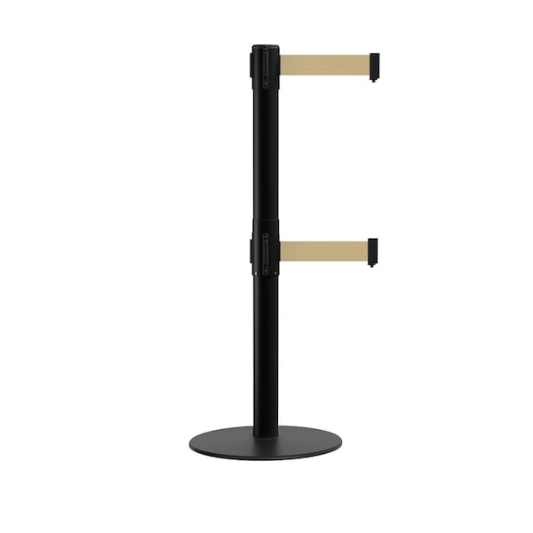 Stanchion Dual Belt Barrier Flat Base Black Post 13ft. Lt BrownBelt