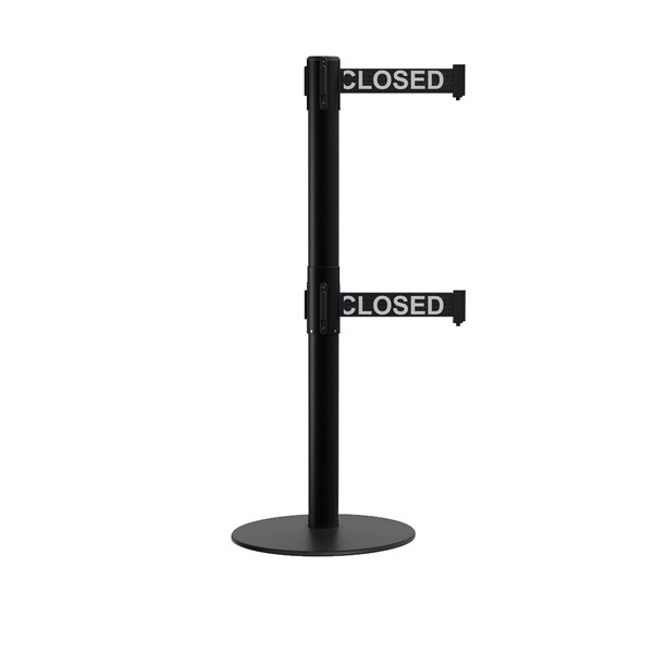 Stanchion Dual Belt Barrier Flat Base Black Post 7.5ftLine.Belt