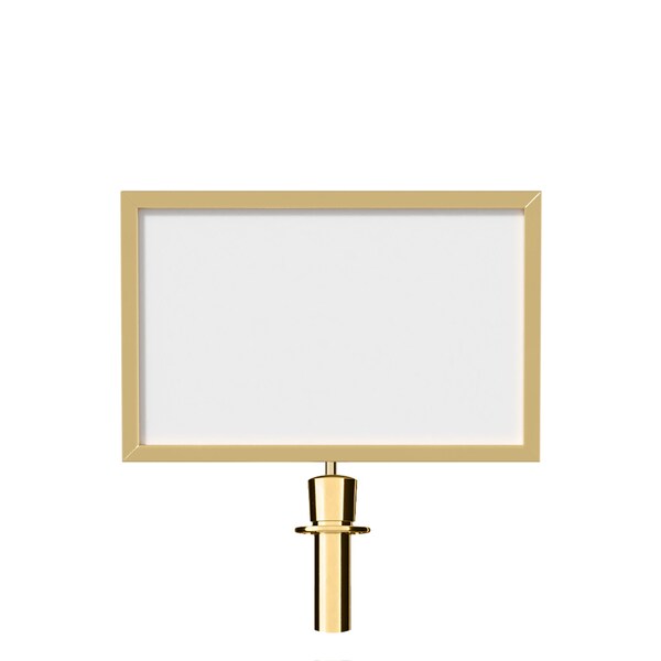 These convenient sign frames fit on top of any standard retractable belt barrier stanchion, allowing your existing stanchions to serve a double purpose as floor signs and increase your in-store messaging without taking up extra floor space. The attractive frame comes in a variety of sizes, finishes, and orientations to match your existing stanchion. Use these for directional or promotional messaging to avoid customer confusion, increase sales, or improve the foot traffic within your store or small business.