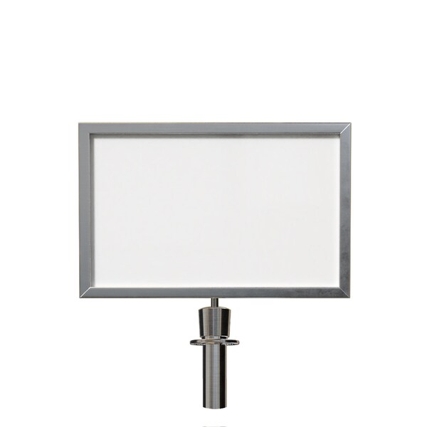 These convenient sign frames fit on top of any standard retractable belt barrier stanchion, allowing your existing stanchions to serve a double purpose as floor signs and increase your in-store messaging without taking up extra floor space. The attractive frame comes in a variety of sizes, finishes, and orientations to match your existing stanchion. Use these for directional or promotional messaging to avoid customer confusion, increase sales, or improve the foot traffic within your store or small business.