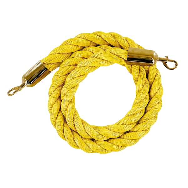 Twisted Polyprop.Rope Yellow With Satin Brass Snap Ends 8ft.CottonCore