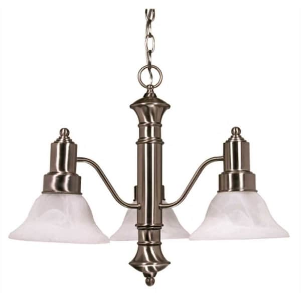 A lovely ceiling fixture which compliments any interior design with its finish. The bulbs provide adequate downward lighting for all living areas. Easy installation instructions and mounting hardware are included with the product.Arm mounting direction: downSingle tierDry location listedAlabaster glass shadeTransitional styleBulbs not includedUL certified