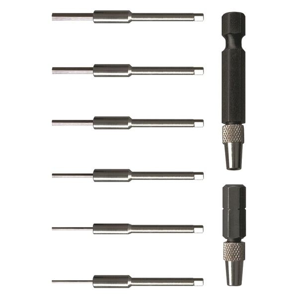 (6) 4" Length of Hex Blades: 0.028", 0.035", 0.050", 0.062", 0.078", 0.093"; Hex Adapters: (1) 2.5" Length of Power Adapter, (1) 3.18" Length of Insert; (1) Vinyl Pouch