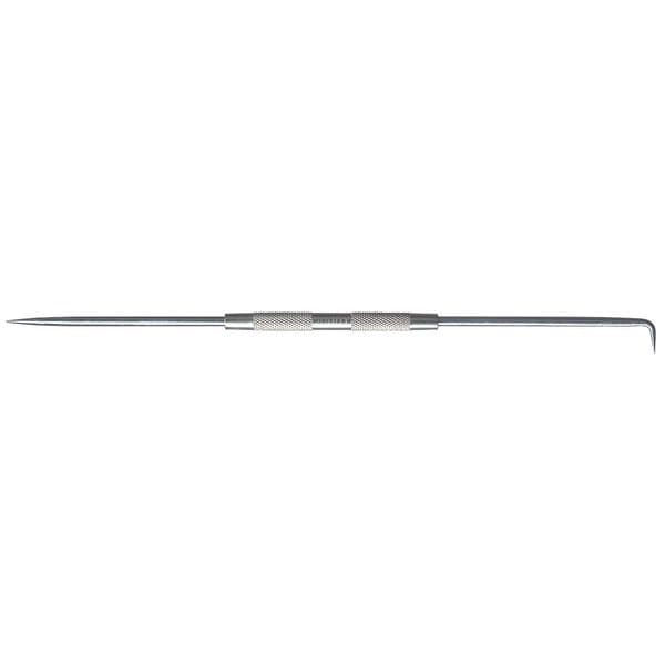 Machinist Scriber, Non-Sparking No, Handle Shape Round, Handle Material Aluminum, Handle Texture Knurled, Magnetic Tip Nonmagnetic, Removable Tip Permanent Tip, Threaded Tip Non-Threaded Tip, Tip Material Steel, Tip Size Not Applicable, Tip Type 90 Degrees Angle, Straight, Tip Style Fixed, ESD-Safe Yes, Overall Length 8 1/4 in, Finish Anodized, Handle Color Silver, Handle Diameter 1/4 in, Handle Width Not Applicable, Includes Not Applicable, Number of Pieces 1, Product Type Scriber