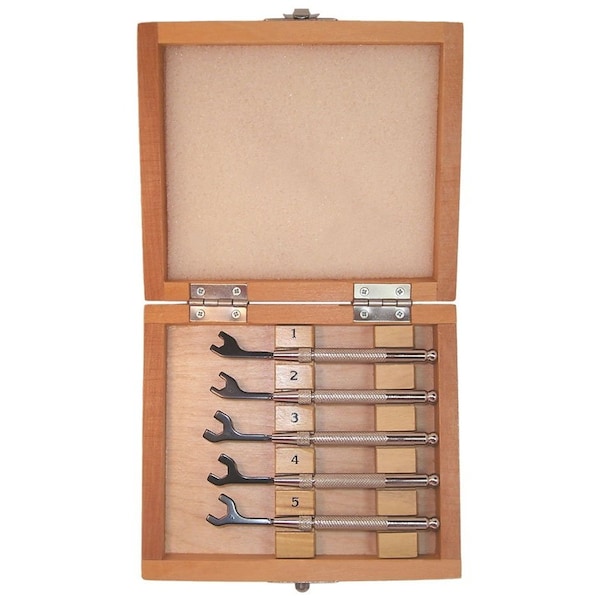 (5) Open End Wrench Set: (1) 4mm, (1) 5mm, (1) 5.5mm, (1) 6mm, (1) 7mm; (1) Wood Box