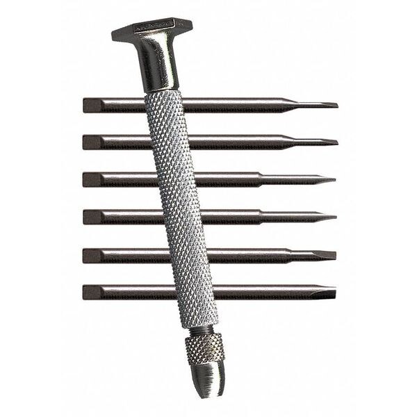 Precision Screwdriver Set, .035 in, .040 in, .055 in, .070 in, .080 in, .100 in, Number of Pieces 7, ESD Safe No, Includes 6 Blades, 1 Interchangeable Handle, 1 Vinyl Pouch