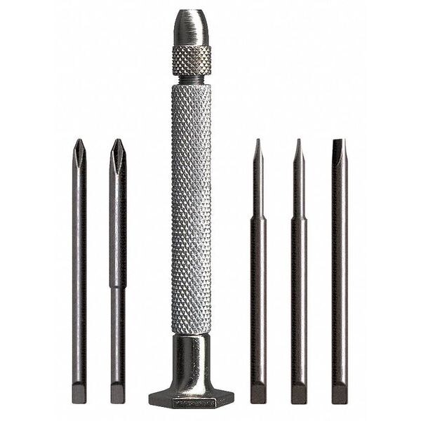 Precision Screwdriver Set, .055 in, .070 in, .100 in, #0, #1, Number of Pieces 6, ESD Safe No, Includes 5 Drivers, 1 Interchangeable Magnetic Handle, 1 Vinyl Pouch