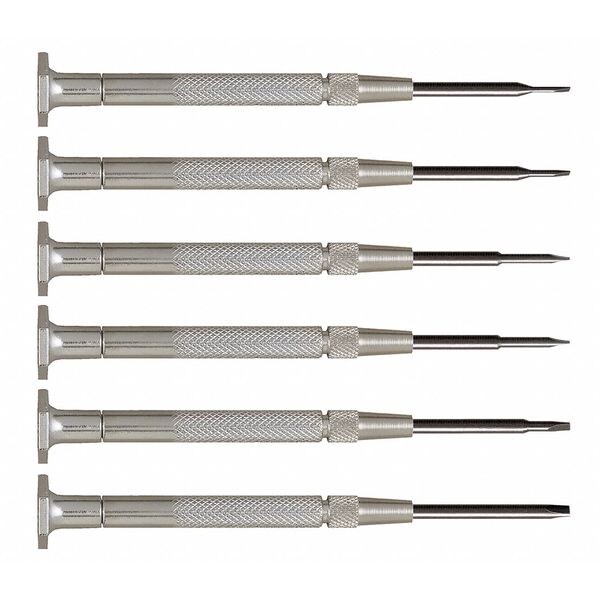 Precision Screwdriver Set, .025 in, .040 in, .055 in, .070 in, .080 in, .100 in, Number of Pieces 6, ESD Safe No, Includes 6 Swivel-top screwdrivers complete with interchangeable blades