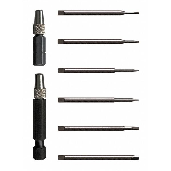 Precision Screwdriver Adapter Set, Number of Pieces 8, Includes Slotted 0.025 in, 0.040 in, 0.055 in, 0.070 in, 0.080 in, 0.100 in