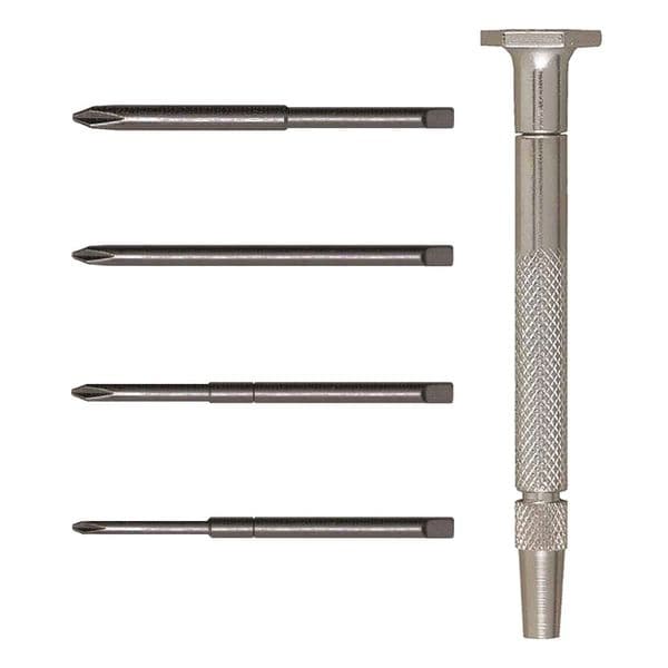 (2) 4" Length of Phillips Blades: #0, #1; (2) 4" Length of JIS Blades: #000, #00; (1) Handle; (1) Vinyl Pouch