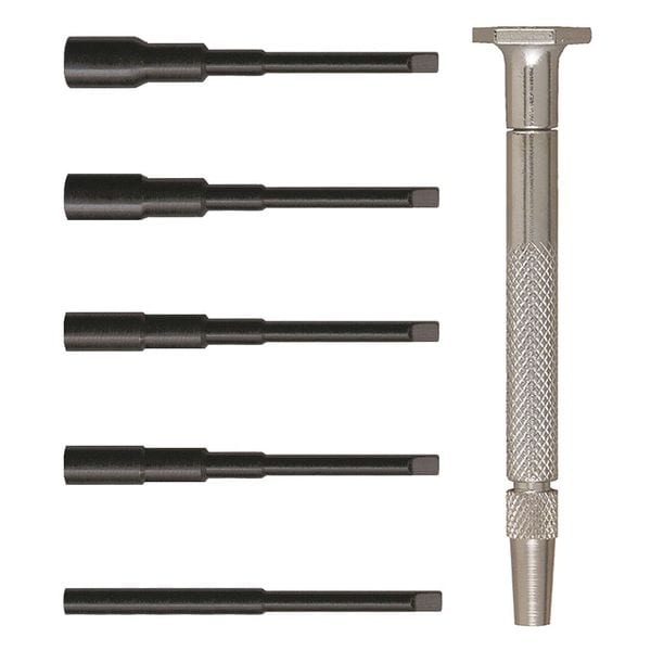 (5) Nut Driver Blades: 5/64", 3/32", 7/64", 1/8", 5/32"; (1) Handle; (1) Vinyl Pouch