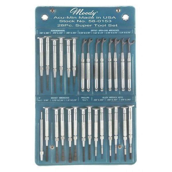 Super Tool Set,28 Pc, Measurement Type SAE, Drive Size Sockets Not Included, Number of Pieces 28, Pliers Included None, Sockets, Drive Tools, and Accessories Included None, Wrenches Included Mini Wrench, Cutting Tools Included None, Plumbing Tools Included None, Electrical and Telecom Tools Included None, Measuring and Testing Tools Included None, Miscellaneous Tools Included None, Number of Pliers 0, Number of Wrenches 8, Abrasives and Finishing Tools Included None