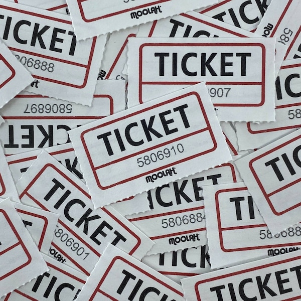 •Single ticket styles are printed with “ADMIT ONE” on the front and are blank on the back