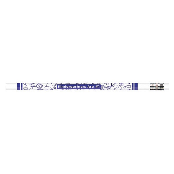 Moon Products Kindergartners Are No.1 Pencil - #2 Lead - White Wood Barrel - 1 Dozen - Creatively designed pencil proclaims that your students are No. 1. Hard black No. 2 pencil creates solid, easy-to-read lines. Eraser offers an easy way to quickly correct mistakes.