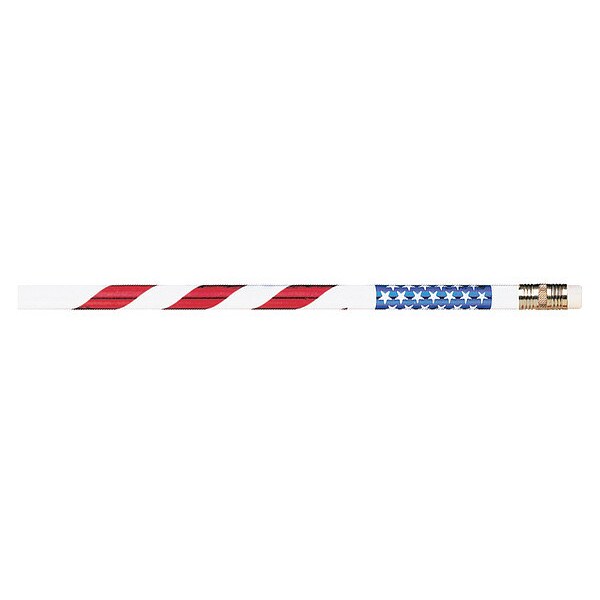 Moon Products Stars & Stripes Themed Pencils - #2 Lead - Red, White, Blue Barrel - 1 Dozen - Themed pencils feature stars and stripes to encourage patriotism in your classroom. No. 2 lead creates smooth, consistent lines for legible handwriting. Rounded barrel is durably constructed to deliver quality performance. Latex-free eraser offers a quick, clean way to correct mistakes.