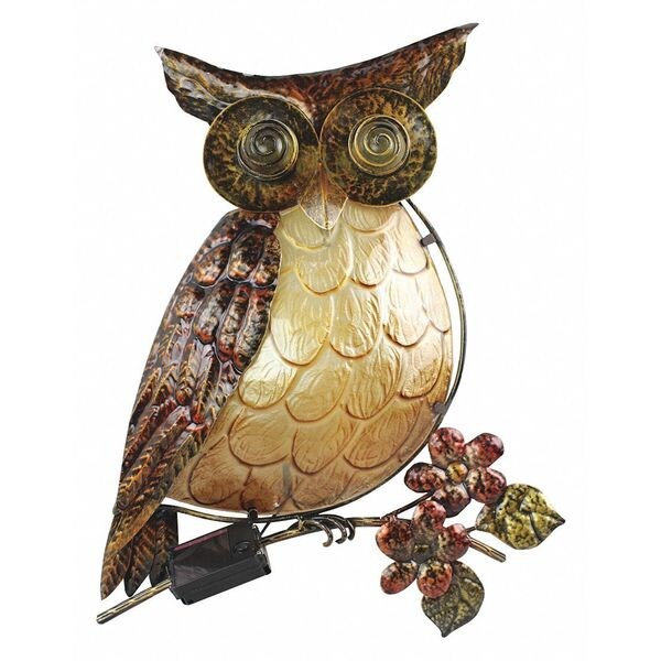 Solar Powered,White LED Owl Wall Art