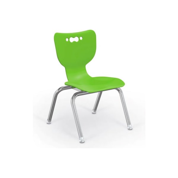Balt hierarchy 12" plastic classroom chair - set of 5 - green flexible and ergonomically shaped seat with lumbar support for easy position changes, eliminating stagnant environments. Smooth reinforced back allows for flex action without sharp ridges. features: 4-leg base available in four seat heights: 12", 14", 16", and 18" with heavy gauge chrome coated steel base. include nylon swivel glides.