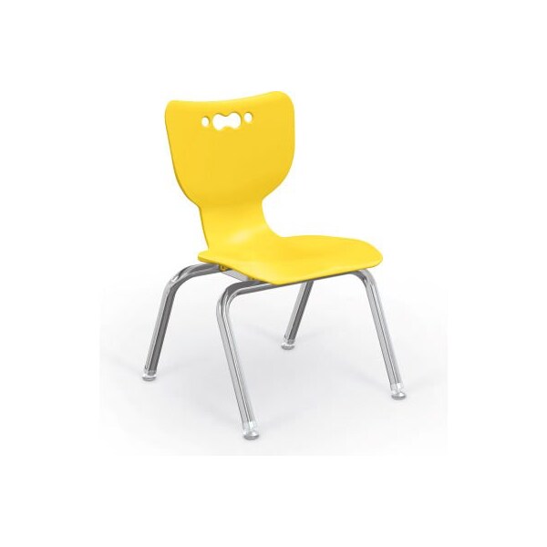 Balt hierarchy 12" plastic classroom chair - set of 5 - yellow flexible and ergonomically shaped seat with lumbar support for easy position changes, eliminating stagnant environments. Smooth reinforced back allows for flex action without sharp ridges. features: 4-leg base available in four seat heights: 12", 14", 16", and 18" with heavy gauge chrome coated steel base. include nylon swivel glides.