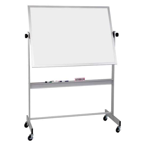 Dry Erase Board, Board Properties Magnetic, Reversible, Mounting/Mobility Type Mobile/Casters, Board Color White, Dry Erase Height 48 in, Dry Erase Width 60 in, Dry Erase Surface Finish Gloss, Adjustable Height Range Not Adjustable, Frame Color Silver, Board Frame Material Aluminum, Frame Material Aluminum, Dry Erase Surface Type Porcelain, Corner Shape Square, Includes Not Applicable, Standards SCS Indoor Advantage Gold Certified