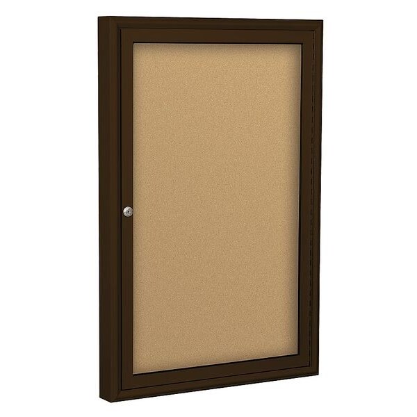 Enclosed Bulletin Board, Push-Pin, Board Material Cork, Width 18 in, Height 24 in, Board Frame Material Aluminum, Frame Color Brown, Board Color Natural, Number of Doors 1, Door Type Swing, Includes (2) Keys, Mounting/Mobility Type Wall Mounted, Door Material Acrylic, Indoor Enclosed Bulletin Board