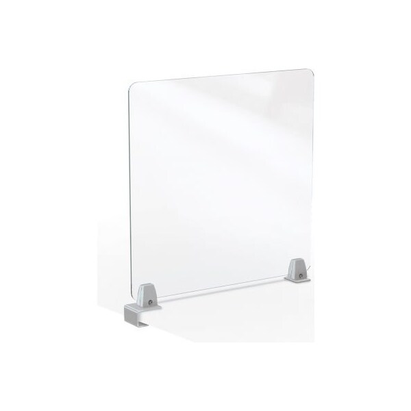 Keep your students, staff, and customers safer and more protected from the spread of germs with a clarity acrylic desktop divider. available in three different configurations to suit your desktop needs: edge clamp for mounting on the edge of the desktop, center clamp to divide a desktop for more than one user, or freestanding to mount wherever needed on the desktop. Use more than one to protect on all sides. ideal for use in classrooms, offices, or any customer-facing applications. powder-coated aluminum mounts feature a rubber pad to protect surfaces. Freestanding models include double tape mounting option. acrylic panels are 24" high, and are available in multiple widths from 23" to 72" to fit virtually any desktop up to 1-3/5" thick. Mix and match sizes to fit your desks and tables.