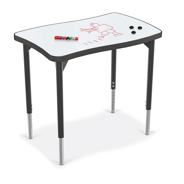 MooreCo now offers even more options for tables with porcelain steel top surface options, offering a durable surface with superior writability and erasability in any space. A porcelain steel whiteboard top provides space for doodling, jotting down notes and ideas, and brainstorming. Surface accepts magnets for even more versatility. Powder coated steel legs are height adjustable and are available in black or platinum. Legs include floor safe glides, or choose optional casters for easy pod configuration. Porcelain reduces ambient reflection and glare over standard markerboard, providing a more comfortable to use writing surface. Porcelain also has superior erasability, and comes with a lifetime guarantee. Tests show porcelain is more than twice as hard and twice as scratch-resistant as laminate, reducing dents, dings, and other damage. Surface is also 5.5 times more wear-resistant. Erasability is more than twice as good on a porcelain surface versus laminate dry erase surface when both surfaces are new, and holds up to use, showing times better erasability over time. Porcelain top is also resistant to delamination, keeping dry erasability intact for the life of the desk. Porcelain steel top comes with molded polypropylene edgebanding in black only. Edge is slightly raised for a fully encapsulated top, ensuring steel will not rust. Steel is extra thick 24-gauge to protect against denting and damage. All desks meet or exceed ANSI/BIFMA testing requirements. SCS Indoor Advantage Gold Certified.