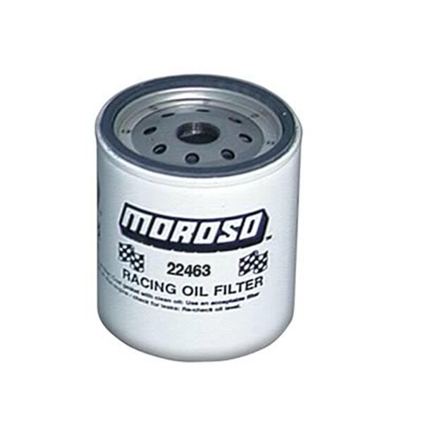 Racing Spin On Oil Filter To maximize filter performance Moroso race oil filters have a filtration rating of 27 microns This results in a maximum pressure drop of only 2 5 psi which results in more flow less oil bypass and maximum filtration performance which is so important in severe racing conditions Made with roll formed threads for a precise tight fit and with an anti drainback valve to keep oil in the filter after engine shutdown they are perfect for any race application Specifications Oil Filter Style Canister Height (in) 3 500 in Filter Bypass Relief Valve Yes Relief Valve Open (psi) 20 psi Anti Drainback Valve Yes Smallest Particle Filtered 20 microns Country of Origin USA