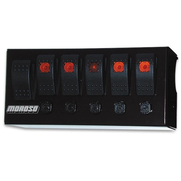 Moroso Rocker Switch Panel - Cage Mount 74190 . Motor State Distributing has set the pace for high-performance automotive components for racing, street and off-road use. Features Rocker Switch Panel - Cage Mount 8in Wide Fused Lighted 6 Rocker Switches