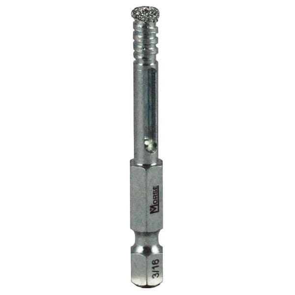 Hole Saw, Primary Material Application Masonry and Tile, Materials Cut Brick, Cast Iron, Ceramic Tile, Glass, Granite, Laminate Flooring, Arbor Design Built-In Arbor, Tooth Material Diamond Grit, Saw Dia. 3/16 in, Teeth per Inch Not Applicable, Max. Cutting Depth 1/2 in, Impact Rated Not Impact Rated, Thread Size Not Applicable, Shank Size 1/4 in