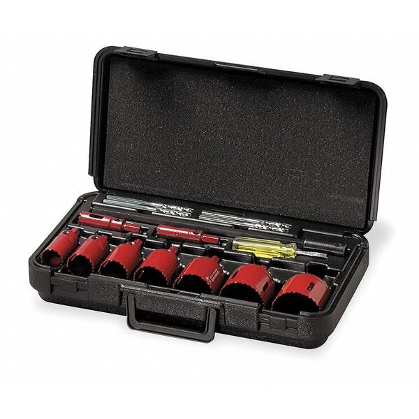 Maintenance Hole Saw Kit, Arbor Design Built-In, Tooth Material Bi-Metal, Teeth per Inch 5, Max. Cutting Depth 1 1/2 in, Impact Rated No, Shank Size 7/16 in Hex, Pilot Drill Size 1/4 in dia x 4 5/16 in L, Number of Pieces 15