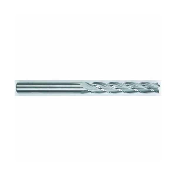 pMorse End Mill, Center Cutting Extra Long Length Single End, Series 5951, 716 in Cutter Dia, 6 in Overall Length, 3 in Maximum Depth of Cut, 4 Flutes, 716 in Shank Dia, Right Hand Cutting, 30 deg Helix Angle, PlainRound Shank, Solid Micrograin Carbide, Brightp