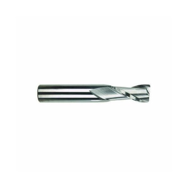 pMorse End Mill, Center Cutting High Performance Regular Length Single End, Series 5967, 38 in Cutter Dia, 002 in Corner Radius, 212 in Overall Length, 1 in Maximum Depth of Cut, 2 Flutes, Spiral Flute, 38 in Shank Dia, Right Hand Cutting, 30 deg Helix Angle, PlainRound Shank, Micrograin Solid Carbide, Brightp