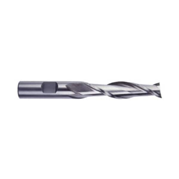 pMorse End Mill, Center Cutting Long Length Single End, Series 4599, 1 in Cutter Dia, 512 in Overall Length, 3 in Maximum Depth of Cut, 2 Flutes, Spiral Flute, 1 in Shank Dia, Right Hand Cutting, 30 deg Helix Angle, RoundWeldon Flat Shank, HSS, Brightp