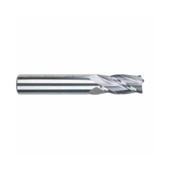 pMorse End Mill, Center Cutting Regular Length Single End, Series 5943T, 116 in Cutter Dia, 112 in Overall Length, 316 in Maximum Depth of Cut, 4 Flutes, Spiral Flute, 18 in Shank Dia, Right Hand Cutting, 30 deg Helix Angle, PlainRound Shank, Solid Micrograin Carbide, TiAlN Coatedp