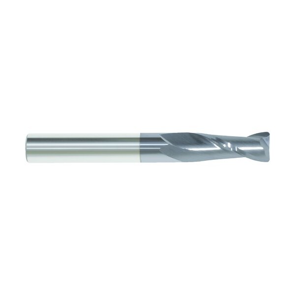 pMorse End Mill, Center Cutting Regular Length Single End, Series 5967T, 58 in Cutter Dia, 0045 in Corner Radius, 312 in Overall Length, 114 in Maximum Depth of Cut, 2 Flutes, Spiral Flute, 58 in Shank Dia, Right Hand Cutting, 30 deg Helix Angle, PlainRound Shank, Micrograin Solid Carbide, AlTiN Coatedp
