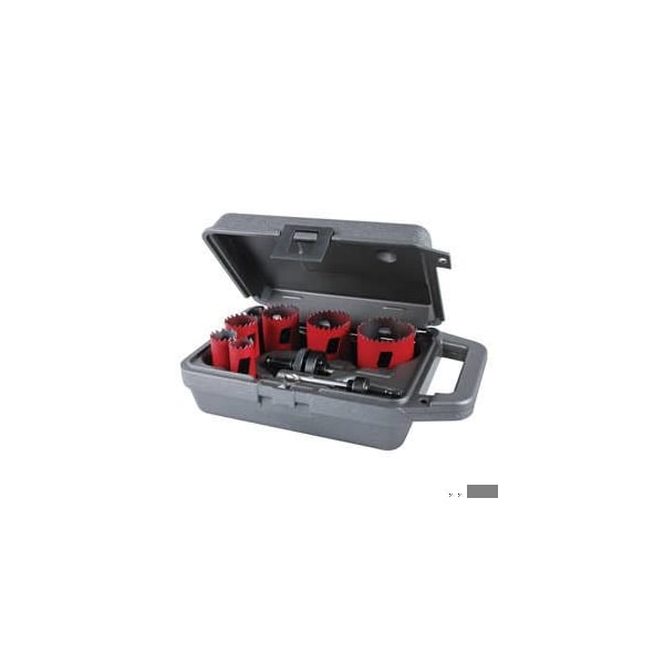 Hole Saw Kit, Locksmith, 8 pc, 1-15/16 in Cutting Depth, Bi-Metal, Red