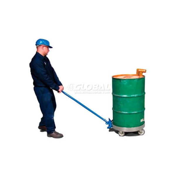 Morse clamp+go drum dolly handle the clamp+go handle helps prevent accidents when moving drums!! this unique dolly handle increases worker safety when moving drums. Simply attach the device to the sidewall of your drum dolly by pushing downward to engage the quick-coupling mechanism, and you can pull or push the drum throughout your facility. Perfect for moving drums into and out of confined areas. The drum is far more stable when using the handle, as the user applies an even force below the drums center of gravity, not at the top of the drum, which reduces the risk of the drum tipping over. Use of the handle is especially beneficial when drums are required to be moved over uneven floor surfaces, as the operator pulls from the bottom of the drum where the weight is far more evenly distributed on all dolly wheels. The dolly handle also reduces the risk of the operator catching his fingers between the drum and other objects. To release the handle, the operator simply uses his steel-toe boot to disengage the clamp from the dolly. Handle also features a magnet to hold the handle vertical for convenient storage. Clamp+go offers a quick-release pin that allows use with most round steel drum dollies with 2", 2-" or 3" high drum retaining rings.