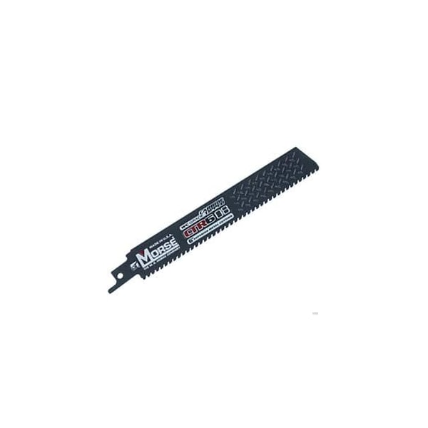 M.K. Morse Reciprocating Saw Blade, High Performance, Series: CTR, 9 in Length, 1 in Width, 0.05 in Thickness, 8 TPI, Precision Ground Teeth, Universal/Toothed Edge Tang, Carbide Cutting Edge, Carbide Body, Applicable Materials: Angle Iron, Black Iron Pipe, Cast Iron, EMT Conduit, Ferrous Metal, Metal Alloy, Rubber, Rebar, Stainless Steel, Steel Plate, Steel Stud and Threaded Rod.