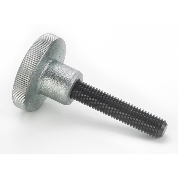 Cast Iron Knurled Hand Knob, 5/16in-18 Threaded Stud, 3in Stud Length, 2in Head Dia, Steel Stud wi