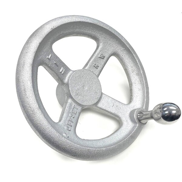 Spoked Offset/Dished Type Aluminum Hand Wheel with Handle, 10in Diameter, 2-1/4inSolid Hub