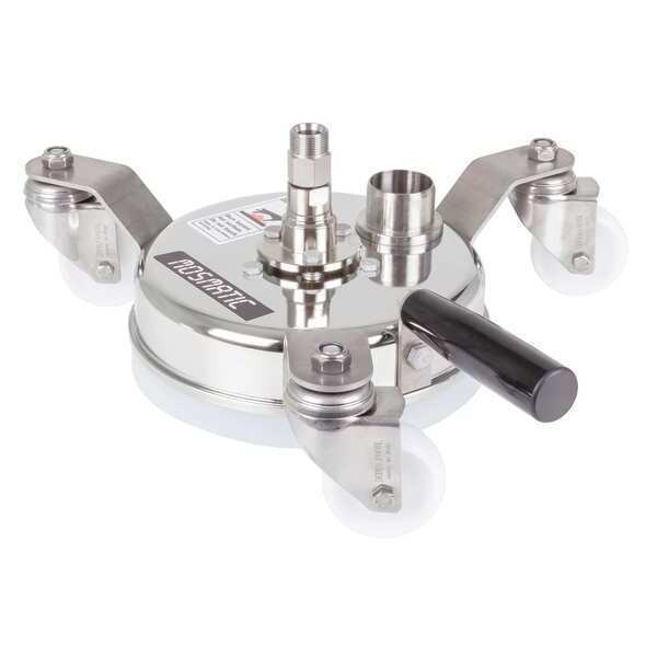 Surface Cleaner, 8 in Cleaning Path, Max. Operating Pressure 350 psi, Flow Rate Not Applicable, 3/8 in NPTM Inlet, Max. Fluid Temp. 250 Degrees F, Stainless Steel Housing Material, Height 6 in, Width 8 in, Length 8 in