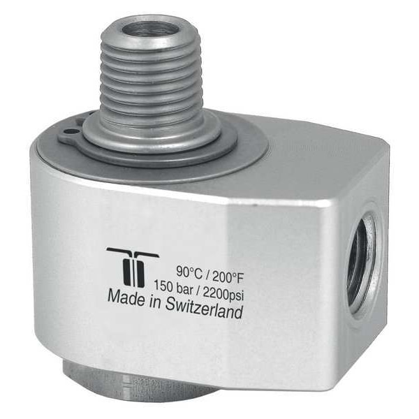 Rotary Union, Fitting Material Brass, Internal Fitting Material Stainless Steel, Fitting Material Finish Nickel-Plated, Internal Fitting Material Grade 304, Fitting Type Elbow, Flow Direction Single-Flow, Maximum Operating Temperature 200 Degrees F, Maximum Speed 30 RPM, Minimum Operating Temperature Not Applicable, Number of Passages 1, Overall Length 1.77 in, Pipe Size Not Applicable, Rotating Shaft Connection Type NPTM, Rotating Shaft Thread Size 1/4 in, Seal Material Nitrile Rubber