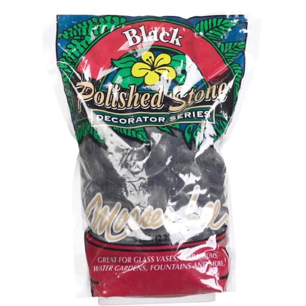 Decorative soil cover. Add a final touch of beauty and protection to all potted plants, terrariums & indoor gardens. Adds color, texture and variety to houseplants. Protects soil and retains moisture. . . Features 5 lb. Black polished stone Add a final touch of beauty and protection to all potted plants, terrariums and indoor gardens Protects soil and retains moisture Adds color, texture and variety to houseplants Specifications Dimension: 2.5in H x 7in W x 10.5in L Weight: 5.2 lbs