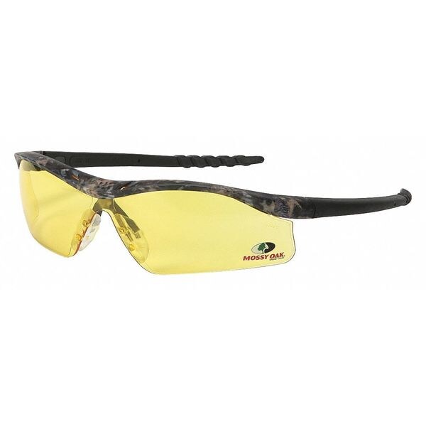Safety Glasses, Series Mossy Oak(R), Gender Unisex, Lens Color Amber, Polarized Lens No, Lens Coating Scratch-Resistant, No Foam Lined, Eyewear Frame Design Wraparound, Eyewear Frame Style Half-Frame, Frame Color Green, Eyewear Size M, Frame Material Polycarbonate, Lens Material Polycarbonate, Temple Color Mossy Oak Camo, Temple Style Nonadjustable, Photochromatic Lens No, Metal Detectable Yes, X-Ray Detectable Yes, UV Protection 99.99 Percent UVA/UVB, Standards ANSI Z87+