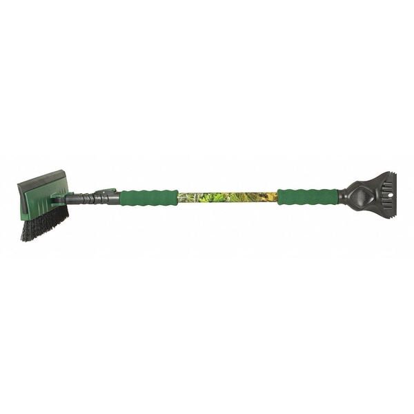 Snow Broom and Scraper, Handle Type Telescopic, Brush Head Width 9 in, Scraper Blade Width 4 1/4 in, Scraper Blade Height 5 1/2 in, Handle Length 45 in, Pivoting, Handle Material Steel, Handle Color Camouflage, Green, Bristle Color Black, Grip Material Foam, Scraper Blade Material ABS