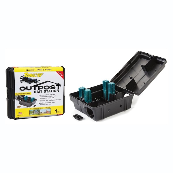 Tomcat Bait Stations provide security by keeping bait out of reach of children, pets, livestock and non-target animals. Bait Stations increase the effectiveness of any bait by protecting it from the elements and providing a sheltered area where rodents feel comfortable feeding. The Tomcat Outpost is an excellent, high quality station at a great value. It can be used keyed or key less and the versatile design makes it a great option for any type of baiting and rodent control program.