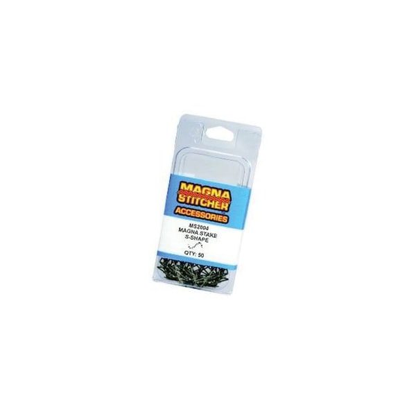 S-Shaped Magna-Stakes for repair of flat surfaces. Clamshell of 50 replacement stakes for Motor Guard Magna-Stitcher plastic repair tools. For Motor Guard Magna-Stitcher plastic repair tools.Stainless Steel Construction.028in Wire diameterFor repair of flat surfacesConvenient clamshell package