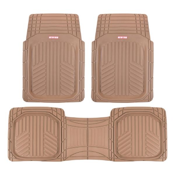 3pc Beige Deep Dish Rubber Floor Mats All-Climate All Weather Performance Plus Heavy Duty Liners Odorless